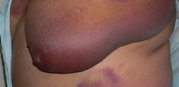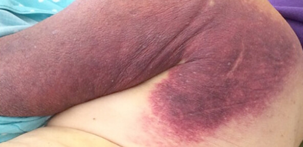 Внезапное появление обширных экхимозов или подкожных гематом