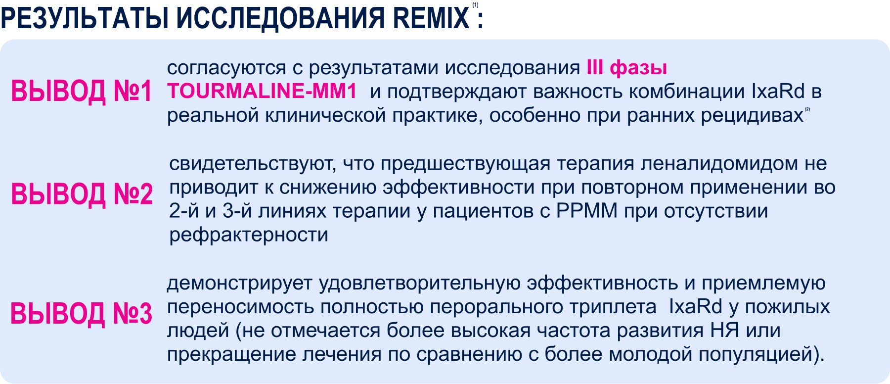 Краткий обзор многоцентрового проспективного неинтервенционного исследования реальной клинической практики REMIX с участием пациентов с рецидивирующей и/или рефрактерной множественной миеломой (РРММ), включая пациентов, ранее получавших леналидомид.